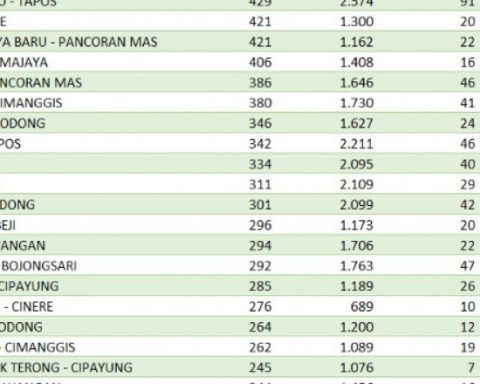 Data sebaran kasus konfirmasi aktif Covid-19 berdasarkan wilayah di Kota Depok per (12/02/22). (Foto: istimewa). pojokdepok.com – Satuan Tugas (Satgas) Covid-19 Kota Depok kembali memperbarui perkembangan kasus aktif Covid-19 berdasarkan wilayah. Dari total 63 kelurahan, akumulasi kasus aktif Covid-19 per 12 Februari