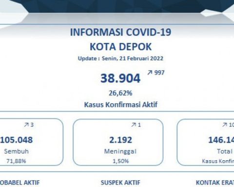 Data perkembangan kasus Covid-19 di Kota Depok per 21 Februari 2022. (Foto: istimewa). pojokdepok.com– Pemerintah Kota (Pemkot) Depok kembali memperbarui data perkembangan kasus Covid-19 di Kota Depok. Berdasarkan data yang dirilis per tanggal 21 Februari 2022, terjadi penurunan pada kasus konfirmasi positif.
