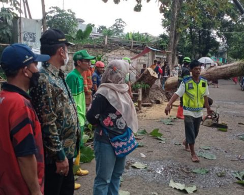 Camat Panmas bersama Lurah Depok Jaya meninjau lokasi terdampak pohon tumbang di RW 08, Sabtu (05/02/22). (Foto: istimewa). pojokdepok.com – Camat Pancoran Mas (Panmas), Syaiful Hidayat didampingi Lurah Depok Jaya, Herliana Maharani meninjau langsung lokasi yang terdampak pohon tumbang akibat angin kencang
