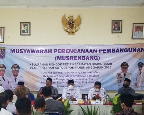 Pelaksanaan Musrenbang Kelurahan Pontir Tahun 2023 di aula kelurahan pada Rabu (19/01) lalu. (Foto : istimewa) pojokdepok.com – Musyawarah Perencanaan Pembangunan (Musrenbang) Kelurahan Pondok Petir (Pontir) Kecamatan Bojongsari Tahun 2023 memprioritaskan pembangunan non fisik yang ada di menu wajib. Meliputi penguatan ekonomi, sosial