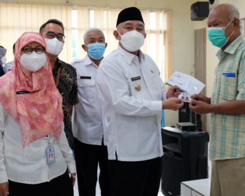 Wali Kota Depok Mohammad Idris saat menyerahkan secara simbolis KDS kepada warga di Kecamatan Cimanggis. (Foto: JD01/Diskominfo) pojokdepok.com – Wali Kota Depok, Mohammad Idris menyerahkan secara simbolis kartu ATM bantuan sosial (bansos) Kartu Depok Sejahtera (KDS) ke masyarakat di aula Kantor Kecamatan