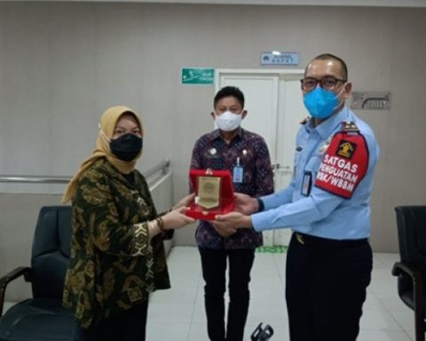 Asisten Deputi Kemenpan RB Nanik Murwati (kiri), menyerahkan plakat kenaikan kelas kepada Kakanim Kelas I Non TPI Depok Fahrul Novry Zaman. (Foto : Istimewa) pojokdepok.com- Kantor Imigrasi Depok memperoleh kenaikan kelas satu tingkat lebih tinggi menjadi Kantor Imigrasi Kelas I Non TPI yang