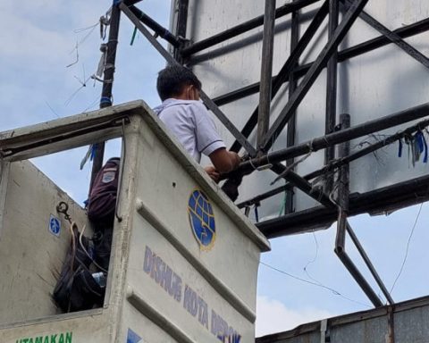 Pemasangan RFID pada objek pajak reklame oleh petugas BKD Kota Depok di Juanda, beberapa waktu lalu. (Foto: istimewa). pojokdepok.com- Kepala Badan Keuangan Daerah (BKD) Kota Depok, Wahid Suryono menyebut, Pendapatan Daerah Kota Depok kembali lampaui target di tahun 2021. Dari target yang