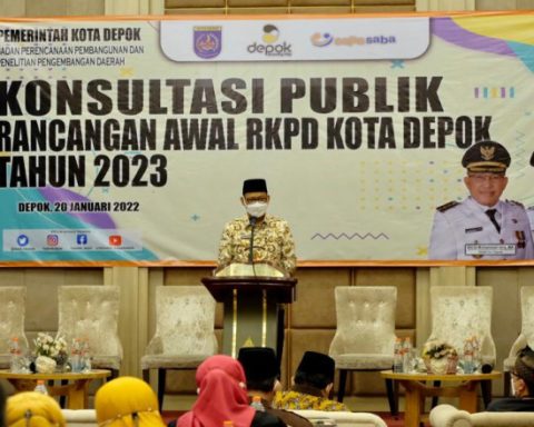 Wakil Walikota Depok, Imam Budi Hartono memberikan sambutan dalam acara Konsultasi Publik Rancangan Awal RKPD tahun 2023 di Hotel Savero, Kamis (20/01/22). (Foto: JD 04/Diskominfo) pojokdepok.com – Wakil Wali Kota Depok, Imam Budi Hartono menegaskan kepada seluruh Perangkat Daerah (PD) agar mengikuti proses