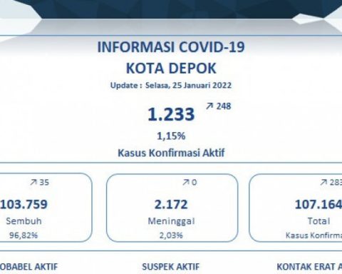 Data perkembangan kasus Covid-19 di Kota Depok per 25 Januari 2022. (Foto: istimewa). pojokdepok.com– Pemerintah Kota (Pemkot) Depok kembali memperbarui data perkembangan kasus Covid-19 di Kota Depok. Berdasarkan data yang dirilis per tanggal 25 Januari 2022, terjadi kenaikan yang signifikan pada kasus