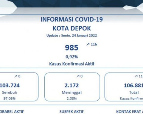 Data perkembangan kasus Covid-19 di Kota Depok per 24 Januari 2022. (Foto: istimewa). pojokdepok.com– Pemerintah Kota (Pemkot) Depok kembali memperbarui data perkembangan kasus Covid-19 di Kota Depok. Berdasarkan data yang dirilis per tanggal 24 Januari 2022, terjadi kenaikan yang signifikan pada kasus