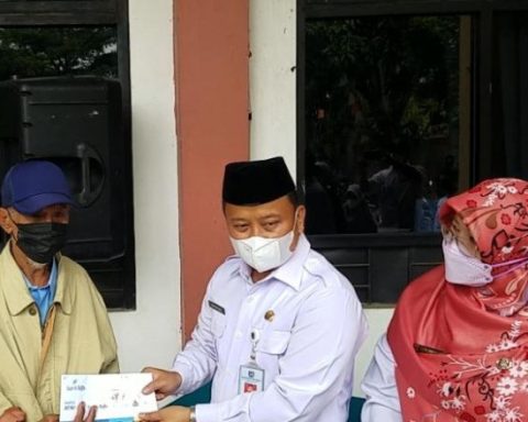 Sekda Kota Depok, Supian Suri (tengah) didampingi Kepala Bidang Perlindungan Jaminan Sosial dan Korban Dinsos Depok, Ambar Hardiani Widjajanti (kanan) saat menyerahkan kartu BPK kepada warga. (Foto : JD10/Diskominfo). pojokdepok.com – Pemerintah Kota (Pemkot) melalui Dinas Sosial (Dinsos) Depok, hari ini menyalurkan kartu Bantuan