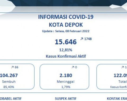 pojokdepok.com – Pemerintah Kota (Pemkot) Depok kembali memperbarui data perkembangan kasus Covid-19. Berdasarkan data yang dirilis per 8 Februari 2022, masih terjadi kenaikan yang signifikan pada kasus konfirmasi harian. Pada data tersebut terdapat penambahan sebanyak 1.834 kasus konfirmasi positif. Dengan demikian, totalnya