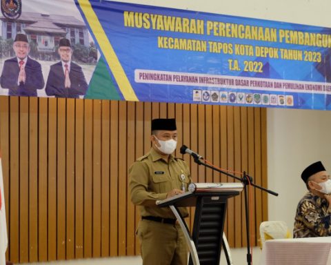 Sekretaris Daerah Kota Depok Supian Suri menghadiri sekaligus membuka secara resmi kegiatan Musyawarah Perencanaan Pembangunan (Musrenbang) yang digelar oleh Kecamatan Tapos secara virtual dan tatap muka di Kinasih Resort, Senin (07/02/2022). Turut hadir Anggota DPRD Kota Depok, perwakilan Perangkat Daerah, dan Tokoh Masyarakat