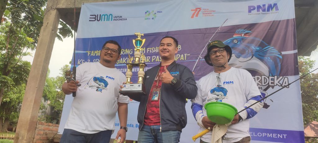 pojokdepok.com-PT Permodalan Nasional Madani (PNM) mengadakan lomba mancing di Kabeda, Beji, Depok, Sabru (20/8). Kegiatan ini digelar dalam rangka merayakan HUT RI ke-77 dan HUT PNM ke-23. Acara mancing ini diikuti 80 karyawan dari sejumlah kantor cabang dan pusat. Ketua PNM Club,
