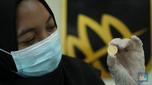 Jakarta, pojokdepok.com – Harga emas batangan produksi PT Aneka Tambang (Antam) Tbk naik cukup tajam pada perdagangan Selasa (21/3). Kasus Evergrande yang membuat bursa saham global merosot membuat harga emas dunia menguat kemarin, dan mengerek emas Antam hari ini. Meski demikian, bank sentral