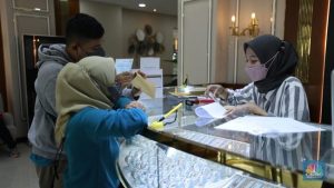 Jakarta, pojokdepok.com – Harga emas Logam Mulia produksi PT Aneka Tambang Tbk pada Rabu (27/9/2023) di butik emas LM Graha Dipta Pulo Gadung anjlok Rp6.000 ke Rp1.066.000 per gram. Sementara harga buyback (harga yang digunakan ketika menjual emas kembali) turut melemah Rp6.000,