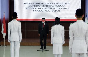 pojokdepok.com-Wali Kota Depok, Mohammad Idris mengukuhkan Pasukan Pengibar Bendera Pusaka (Paskibraka) tingkat Kota Depok yang akan bertugas dalam upacara Hari Ulang Tahun (HUT) ke-76 Republik Indonesia (RI) di Balai Kota Depok pada 17 Agustus 2021. “Atas nama pemerintah dan pribadi, saya ucapkan