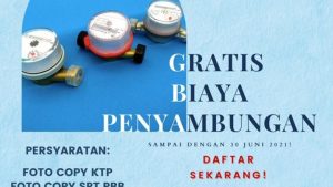 pojokdepok.com– Perusahaan Daerah Air Minum (PDAM) Tirta Asasta Kota Depok mengimbau masyarakat untuk memanfaat program gratis biaya penyambungan baru air bersih, yang masih berlaku hingga 30 Juni 2021. Syaratnya cukup mudah hanya dengan KTP elektronik, SPT PBB dan materai 10 ribu. Direktur