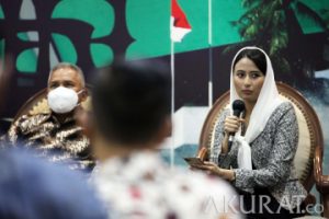 Anggota DPR/BKSAP Fraksi Golkar Dyah Roro Esti (kanan) bersama Wakil Ketua BKSAP F-PAN Achmad Hafidz Tohir saat menjadi pembicara dalam diskusi Dialektika Demokrasi di Media Center, Nusantara III, Kompleks Parlemen MPR/DPR-DPD, Senayan, Jakarta, Kamis (17/3/2022). Diskusi ini membahas tema “Misi DPR RI dalam