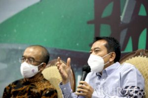 Ketua Komisi X DPR RI F-PKB Syaiful Huda dan Sekretaris Kemenpora RI Gatot Sulistiantoro Dewa Broto saat menjadi pembicara dalam diskusi Forum Legislasi di Media Center, Kompleks Parlemen MPR/DPR-DPD, Senayan, Jakarta, Selasa (21/6/2021). Diskusi Forum Legislasi ini membahas Tema: “Masa Depan Atlet