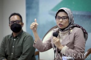 Anggota Badan Legislasi DPR RI (Fraksi PKB) Neng Eem Marhamah Zulfa (kanan) saat menjadi pembicara dalam diskusi Forum Legislasi di Media Center, Nusantara III, Kompleks Parlemen MPR/DPR-DPD, Senayan, Jakarta, Selasa (5/10/2021). Dalam diskusi Forum Legislasi ini membahas tema “Quo Vadis RUU Ibu