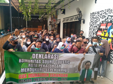 pojokdepok.com – Ketua Umum Partai Kebangkitan Bangsa (PKB), Muhaimin Iskandar semakin santer mendapat dukungan dari berbagai komunitas untuk maju di Pemilihan Presiden (Pilpres) pada 2024 mendatang. Kali ini dukungan tersebut datang dari Komunitas Soundcoustic Kota Pekalongan. Dukungan tersebut mereka sampaikan melalui acara deklarasi