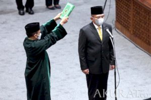 Sekjen DPP Golkar Lodewijk F Paulus saat dilantik menjadi Wakil Ketua DPR dalam Rapat Paripurna DPR RI Ke-6 Masa Persidangan I Tahun Sidang 2021-2022 di Nusantara II, Kompleks Parlemen MPR/DPR-DPD, Senayan, Jakarta, Kamis (30/9/2021). DPP Partai Golkar menunjuk Fraksi Partai Golkar Lodewijk Freidrich