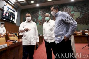 Menteri Pemuda dan Olahraga Zainudin Amali berbincang dengan Pimpinan dan Anggota Komisi X sebelum dimulainnya rapat kerja di gedung Nusantara I, Kompleks Parlemen MPR/DPR-DPD, Senayan, Jakarta, Rabu (22/09/2021). Dalam rapat kerja ini Mentri Pemuda dan Olahraga membahas DIM RUU tentang Sistem Keolahragaan
