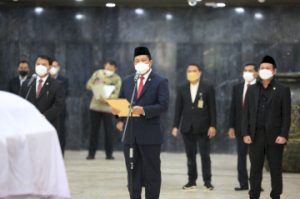 pojokdepok.com – Wakil Ketua DPD RI Mahyudin bertindak sebagai Inspektur Upacara Pelepasan dan Serah Terima atas Jenazah Almarhum Sabam Sirait, anggota DPD RI asal DKI Jakarta bertempat di Kompleks Parlemen Senayan, Jakarta pada hari Minggu (3/10/2021). Upacara dimaksud sekaligus merupakan prosesi penyerahan almarhum