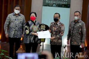 Ketua DPR Puan Maharani didampingi Wakil Ketua DPR Rachmat Gobel (kiri) dan Lodewijk F Paulus (kanan) menerima surat Presiden (Supres) dari Menteri Sekretaris Negara Pratikno (di Lobby Nusantara III, Kompleks Parlemen MPR/DPR-DPD, Senayan, Jakarta, Rabu (3/11/2021). Dalam Supres ini mengajukan KSAD Jendral TNI