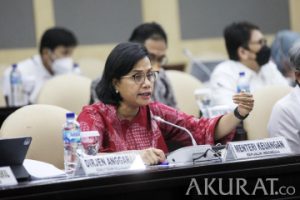 Menteri Keuangan Sri Mulyani saat memberikan penjelasan kepada Komite IV di ruang GBHN, Nusantara IV, Kompleks Parlemen MPR/DPR-DPD, Senayan, Jakarta, Senin (24/1/2022). Rapat tersebut membahas evaluasi anggaran daerah 2021 dan perencanaan APBN daerah 2022 terkait penanganan pandemi Covid-19. pojokdepok.com -/Sopian . Ketua