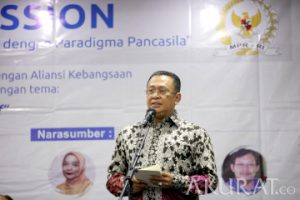 Ketua MPR Bambang Soesatyo memberikan kata sambutan dalam Focus Group Discussion (FGD) MPR RI di Media Center, Nusantara III, Kompleks Parlemen MPR/DPR-DPD, Senayan, Jakarta, Senin (18/10/2021). FGD MPR RI dengan tema “MPR sebagai Lembaga Perwakilan Inklusif” membahas tentang urgensi pokok-pokok haluan negara,