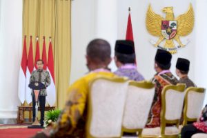 Presiden Joko Widodo saat membuka Apkasi Otonomi Expo 2021 di Istana Kepresidenan Bogor, Jawa Barat, Rabu (20/10/2021). Presiden Joko Widodo menyambut baik terselenggaranya Otonomi Expo 2021 oleh Asosiasi Pemerintah Kabupaten Seluruh Indonesia (Apkasi). Menurut Presiden pameran ini merupakan ajang untuk memperkuat kerja sama