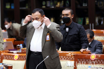 Ketua Komisi Pemberantasan Korupsi (KPK) Firli Bahuri saat bersiap mengikuti rapat kerja dengan komisi III membahas anggaran di Nusantara II, Kompleks Parlemen MPR/DPR-DPD, Senayan, Jakarta, Rabu (26/1/2022). Rapat ini membahas Evaluasi Kinerja KPK Tahun 2021 dengan Pagu Anggaran sebesar Rp1.159.908.593.000, Program Priorita KPK