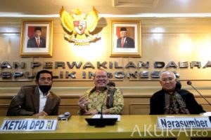 Ketua DPD RI, AA LaNyalla Mahmud Mattalitti (tengah) bersama Ketua Pergerakan Indonesia Maju Din Syamsuddin (kanan) dan Ketua Umum Gerakan Bela Negara Brigjen TNI (Purn) Hidayat Poernomo (kiri) saat menjadi pembicara dalam acara Dialog Kebangsaan di Ruang Sriwijaya, Gedung B Komplek Parlemen