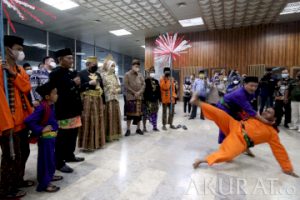 Ketua DPD RI AA LaNyalla Mahmud Mattalitti bersama Istri saat menyaksikan pertunjukan palang pintu sebelum menghadiri perayaan Hari Ulang tahun (HUT) ke-17 DPD di Nusantara IV, Kompleks Parlemen MPR/DPR-DPD, Senayan, Jakarta, Jumat (1/10/2021). Dewan Perwakilan Daerah (DPD) RI pada 1 Oktober 2021 ini