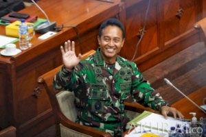 Calon Panglima TNI Jenderal Andika Perkasa saat menjalani uji kelayakan dan kepatutan dengan Komisi I DPR RI di Kompleks Parlemen, Senayan, Jakarta, Sabtu (6/11/2021). Komisi I DPR RI menggelar fit and proper test atau uji kelayakan dan kepatutan kepada calon tunggal Panglima