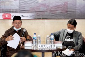 Mantan Menteri Keuangan era Presiden Soeharto, Fuad Bawazier (kiri) dan Anggota DPD Dapil Jawa Tengah Abdul Kholik saat menjadi pembicara dalam diskusi Dialog Kebangsaan di Lobby Nusantara IV, Kompleks Parlemen MPR/DPR-DPD, Senayan, Jakarta, Kamis (23/9/2021). Diskusi ini membahas tema, ‘Pokok-Pokok Haluan Negara’. pojokdepok.com