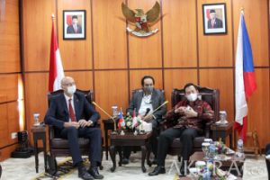 Wakil Ketua DPD Sultan Baktiar Najamudin (kanan) melakukan pertemuan dengan Duta Besar Ceko Jaroslav Dolecek (kiri) di ruang pimpinan gedung Nusantara III, Kompleks parlemen MPR/DPR-DPD, Senayan, Jakarta, Kamis (20/1/2022). Pertemuan membahas sejumlah potensi kerjasama dua negara, khususnya bidang pertukaran pelajar dan agenda