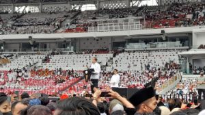 pojokdepok.com – Presiden Joko Widodo menggelar pertemuan dengan ribuan relawannya di Stadion GBK, Jakarta, dalam kegiatan bertajuk Nusantara Bersatu, Sabtu (26/11/2022) pagi. Dalam kesempatan itu, Jokowi menyampaikan pesan kepada para relawan agar dalam memilih pemimpin atau calon presiden haruslah seorang yang pekerja