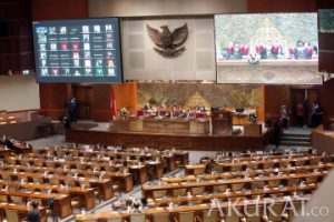 Suasana rapat paripurna ke-14 masa persidangan III tahun sidang 2021-2022 di Nusantara II, Kompleks Parlemen MPR/DPR-DPD, Senayan, Jakarta, Selasa (8/2/2022). Agenda rapat paripurna DPR hari ini tertuang dalam surat nomor B/3164/PW.11.01/2/2022. Ada 6 acara dalam rapat paripurna DPR hari ini. Salah satu di