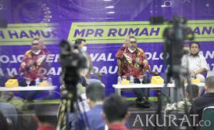 Wakil Ketua MPR Jazilul Fawaid bersama Dosen Ilmu Politik FISIPOL UKI/Pengajar Kebijakan Penanggulangan Intoleransi, Radikalisme, dan Terorisme PTIK Sidratahta Mukhtar (kanan) menjadi pembicara dalam Diskusi Empat Pilar MPR di Media Center, Kompeks Parlemen MPR/DPR-DPD, Senayan, Jakarta, Senin (22/11/2021). Diskusi tersebut mengangkat tema