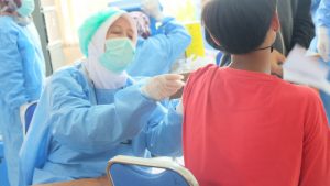 Pelaksanaan Gebyar Vaksinasi di Kecamatan Cimanggis. pojokdepok.com – Hari pertama pelaksanaan gebyar vaksinasi Covid-19 dosis kedua di Kecamatan Cimanggis menjaring sebanyak 790 orang. Dari jumlah peserta yang mendaftar, sebanyak 785 orang berhasil disuntik vaksin Covid-19. “Ada lima warga yang gagal divaksin karena tidak