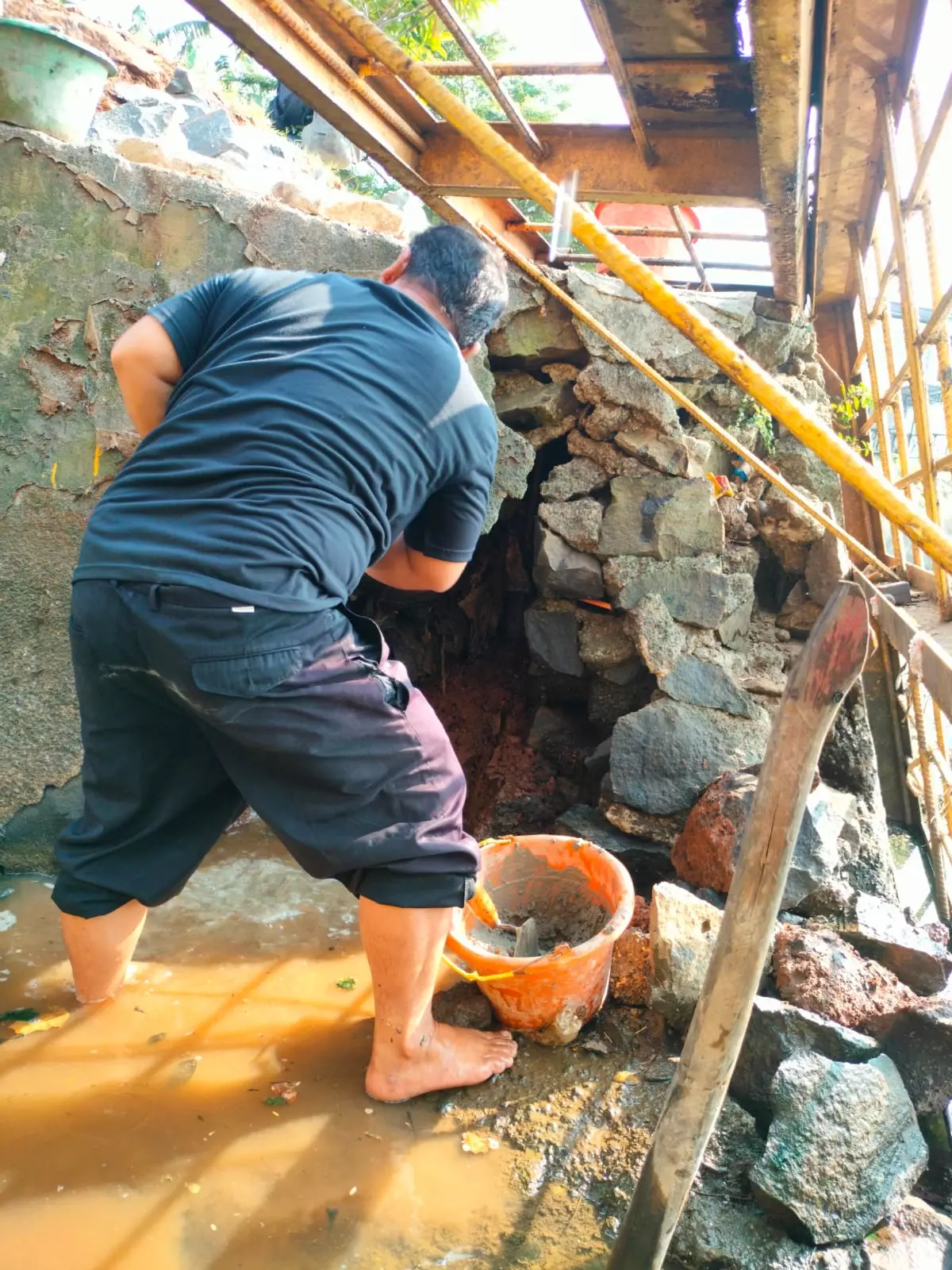 “Tinggi turap yang berongga 1 meter dengan panjang 1,5 meter. Kami turunkan satgas sebanyak satu regu atau 10 personel dan ditangani secara manual,” ujarnya, Selasa (23/07/24).