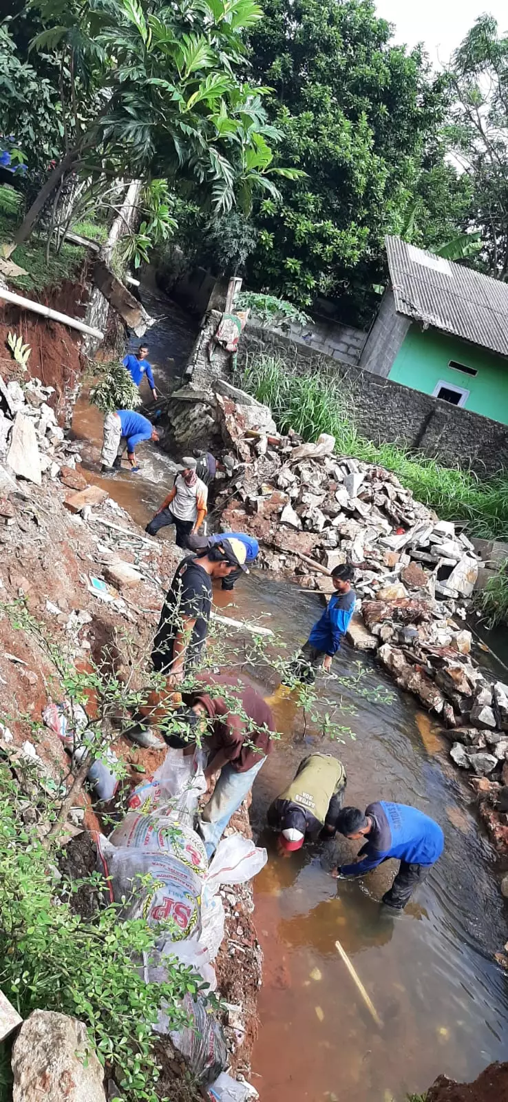 pojokdepok.com- Satuan Tugas (Satgas) Dinas Pekerjaan Umum dan Penataan Ruang (DPUPR) Kota Depok masih terus melakukan penanganan terkait longsor di Kali Sarangan, Kelurahan Kalibaru, Kecamatan Cilodong. Untuk mencegah longsor susulan, pihaknya membuat turap sebagai penanganan lanjutan.
