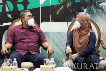 Waketum DPP PKB/Wakil Ketua MPR RI/Komisi III DPR RI Jazilul Fawaid (kiri) bersama Anggota Dewan Pembina Perludem Titi Anggraini saat menjadi pebicara dalam diskusi Dialektika Demokrasi di Media Centre, Nusantara III, Kompleks Parlemen PR/DPPR-DPD, Senayan, Jakarta, Kamis (10/3/2022). Diskusi ini membahas tema “Wacana Penundaan Pemilu, Sikap DPR?”. pojokdepok.com -/Sopian