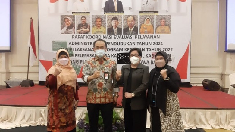 Disdukcapil Depok dan Direktur Jenderal (Dirjen) Kependudukan dan Pencatatan Sipil (Dukcapil) Kementerian Dalam Negeri ( Kemendagri ) Zudan Arif Fakrulloh (kedua dari kiri) saat Rakor pelayanan Dukcapil belum lama ini. (Foto: Istimewa)