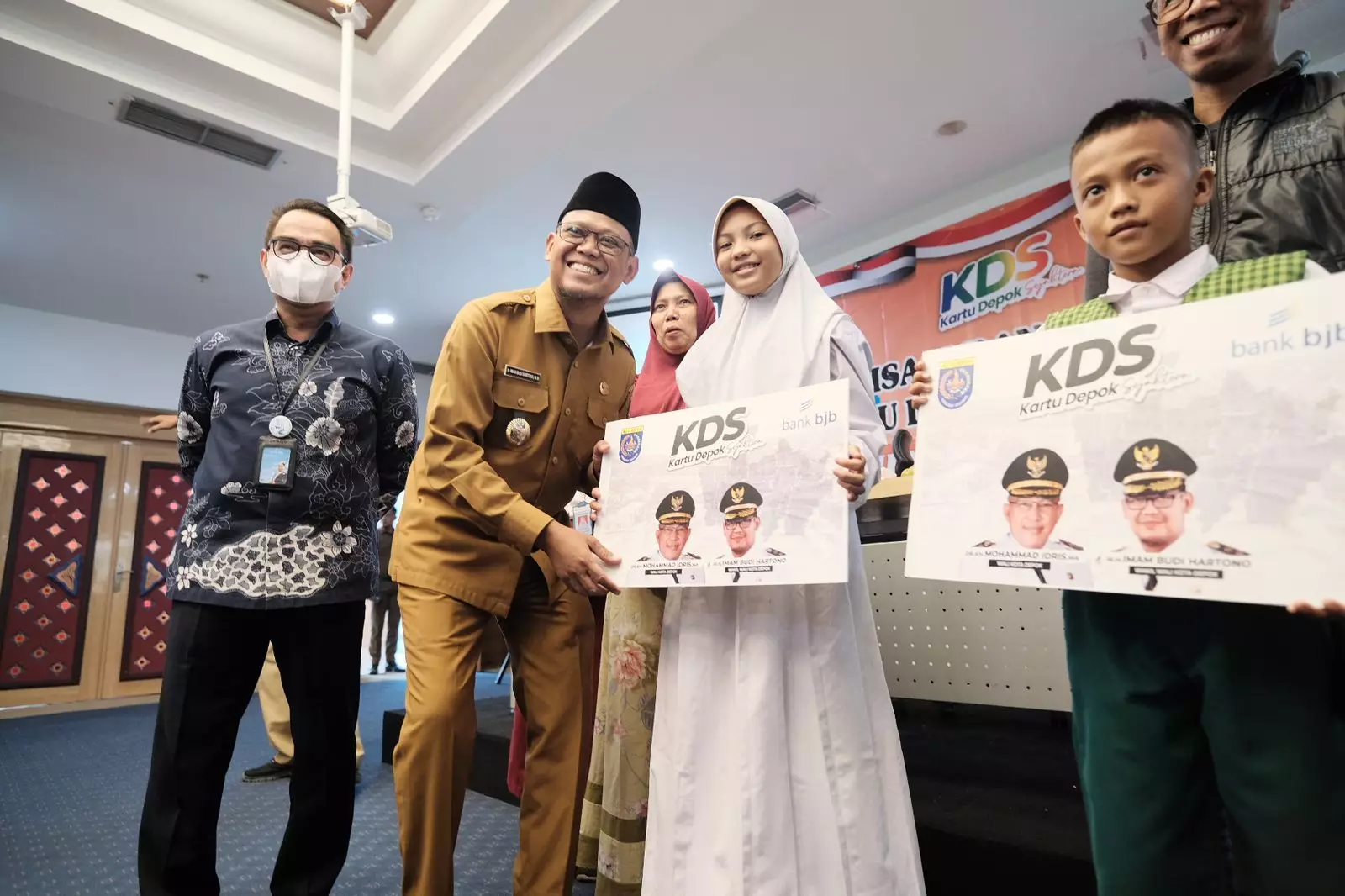 pojokdepok.com – Dinas Pendidikan (Disdik) Kota Depok hari ini secara simbolis menyerahkan beasiswa program Kartu Depok Sejahtera (KDS) kepada siswa yang telah lolos seleksi dan terdata dalam Data Terpadu Kesejahteraan Sosial (DTKS). Penyerahan diberikan kepada 5.357 siswa jenjang Sekolah Dasar (SD) dan Madrasah Ibtidaiyah (MI) secara bertahap.