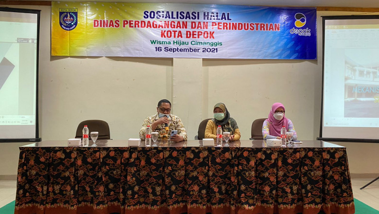 Disdagin Kota Depok saat melakukan sosialisasi pembuatan sertifikat halal untuk pelaku IKM, belum lama ini. (Foto: istimewa)