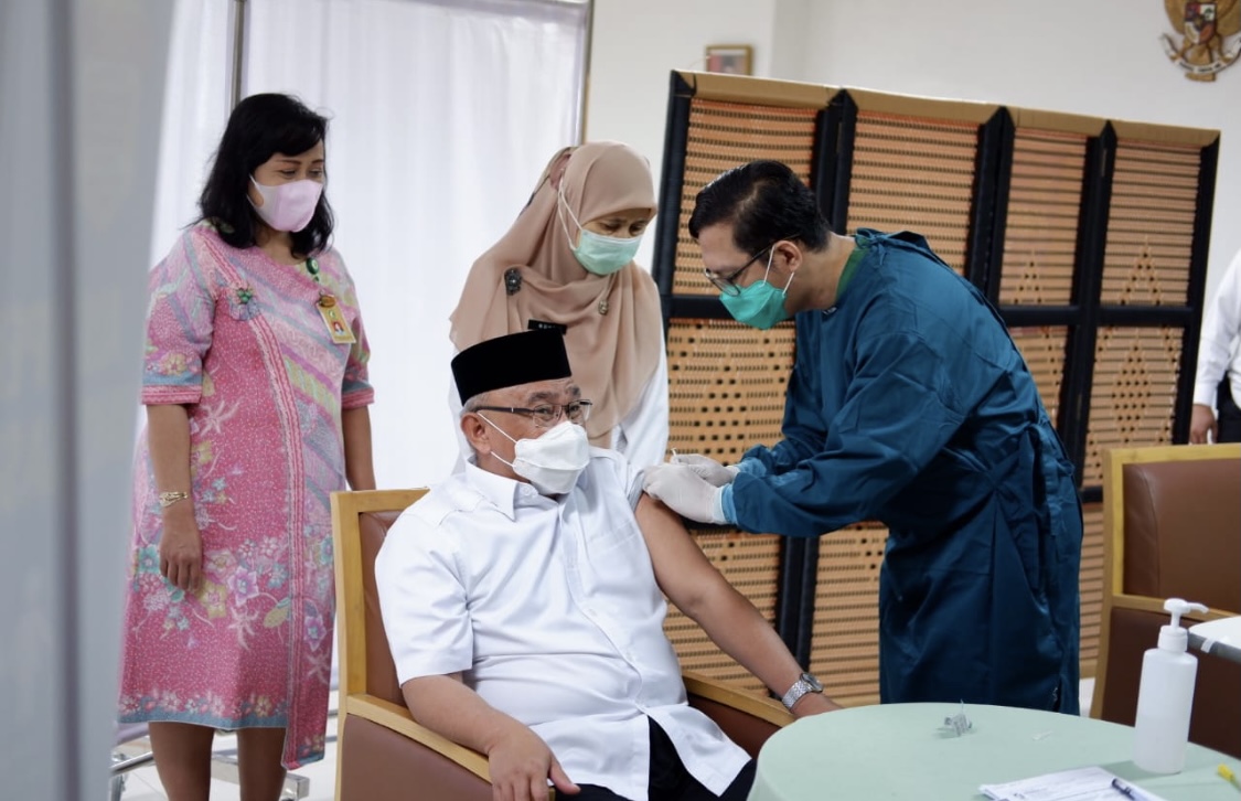 Wali Kota Depok, Mohammad Idris mendapatkan vaksinasi Covid-19 dosis kedua di Rumah Sakit (RS) Hermina Depok pada Rabu (24/03/2021). Seperti pelaksanaan vaksinasi pertama pada 10 Maret 2021, Mohammad Idris harus melewati tahapan pemeriksaan lebih dulu sebelum diberikan vaksin Covid-19 kedua.