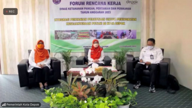 pojokdepok.com – Dinas Ketahanan Pangan, Pertanian dan Perikanan (DKP3) Kota Depok menggelar kegiatan Forum Rencana Kerja (Renja) Tahun Anggaran 2023 secara virtual dan tatap muka di Aula Kantor DKP3 Kota Depok, Rabu (23/02/22). Kegiatan tersebut dihadiri dan dibuka secara resmi oleh Wakil Wali Kota Depok Imam Budi Hartono. (JD01/EUD02)