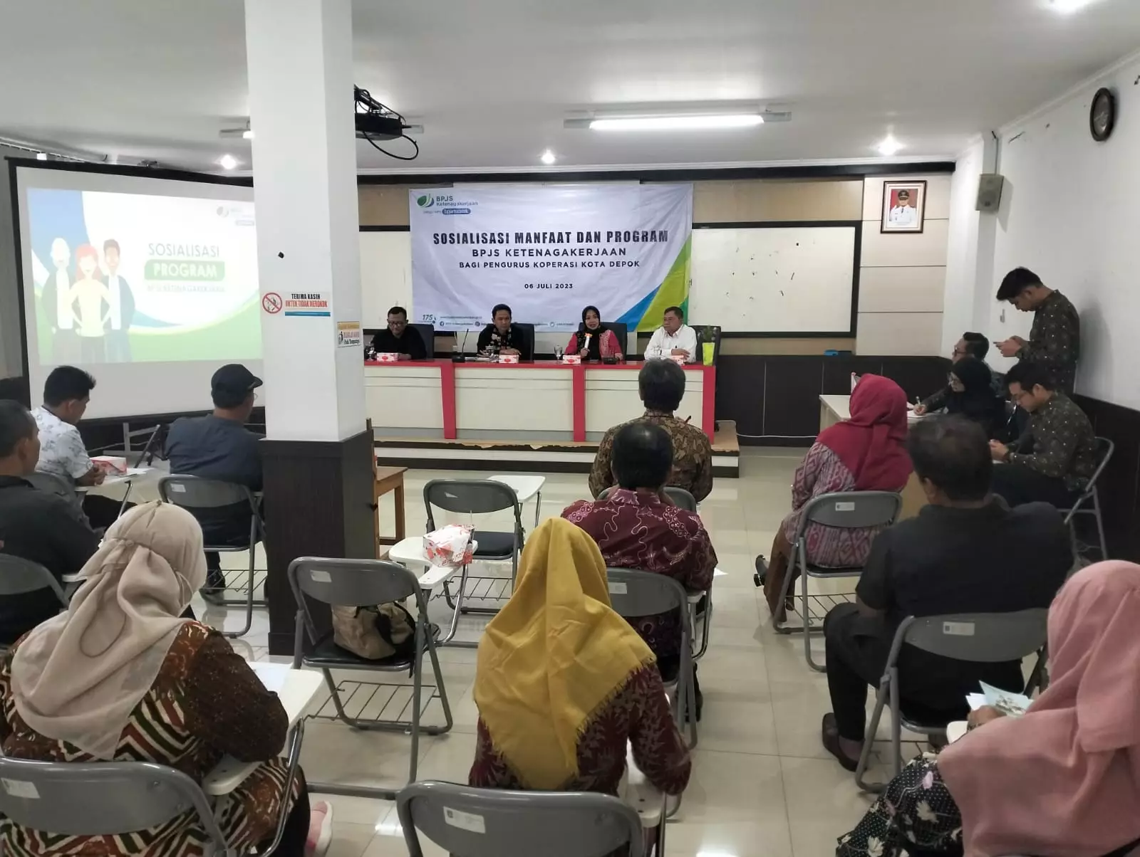 Kamis (06/07) kemarin, BPJS Ketenagakerjaan Kota Depok melakukan sosialisasi manfaat dan program jaminan sosial, di Gedung Balatkop, Kecamatan Sukmajaya.