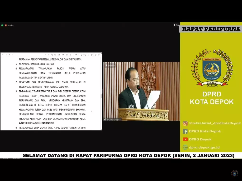 Sementara itu, Wakil Ketua Komisi B, Lahmudin Abdullah menyampaikan, rencana kerja Komisi B pada masa sidang pertama ini berdasarkan visi dan misi Rencana Pembangunan Jangka Menengah Daerah (RPJMD) Kota Depok tahun 2021-2026. Adapun isu strategi yang akan dilakukan yaitu meningkatkan daya saing Usaha Mikro dan Kecil (UMK) serta akses pasar dan menggerakkan perekonomian daerah berbasis pemanfaatan potensi lokal.