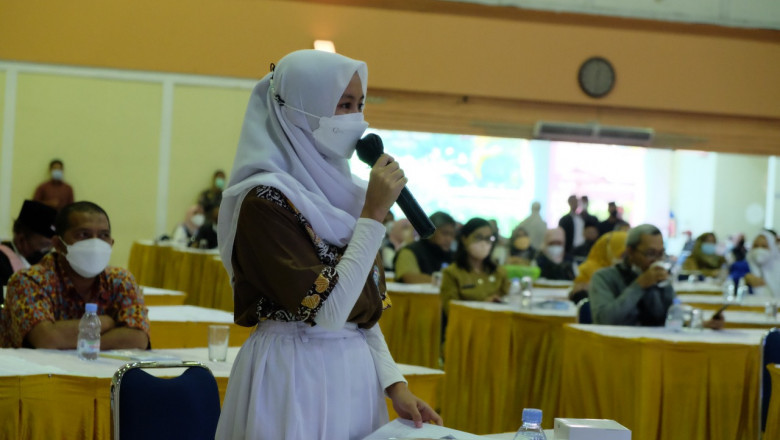 Ketua Forum Anak Kota Depok, Buti Adia Darma menyampaikan aspirasi dalam Musyawarah Perencanaan Pembangunan (Musrenbang) Rencana Kerja Perangkat Daerah (RKPD) Kota Depok Tahun 2023, kemarin (16/03/22). (Foto: JD 01/Diskominfo).